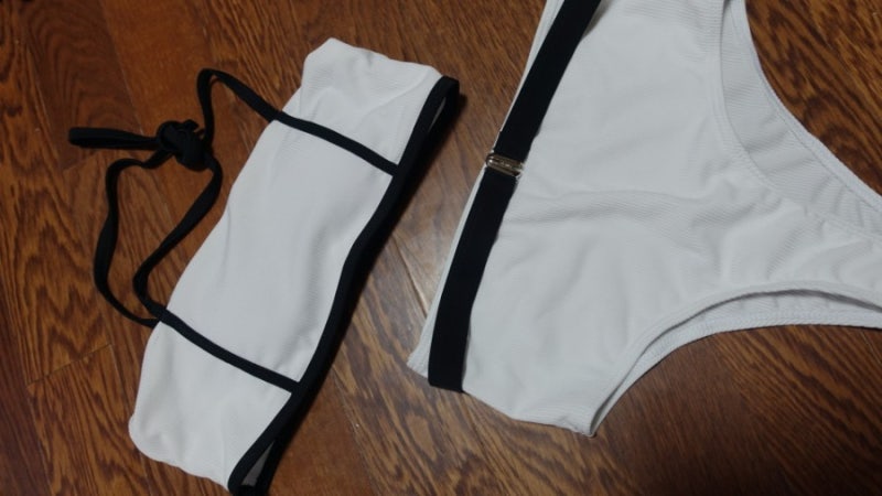 어깨끈은 홀터넥으로 되어있는 디자인입니다 상의는 밴드로만 묶어주는 디자인이 아니고 뒤쪽은 후크로 되어있어 흘러내릴 염려가 없습니다.