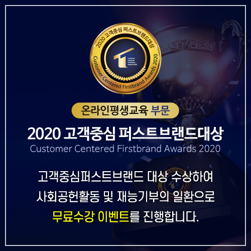 또한교육원에서는고객중심퍼스트브랜드대상을온라인평생교육부문에서도수상하였으며,사회공헌활동및재능기부일환으로이번무료수강행사를개최하였습니다.