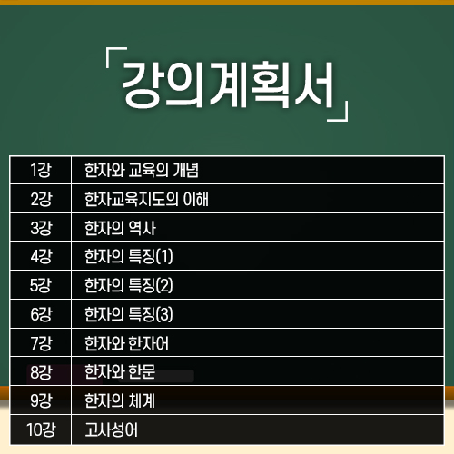 이 과정은 국제자격검정원에서 교육하는 한자교육지도사 과정 강의 계획서입니다