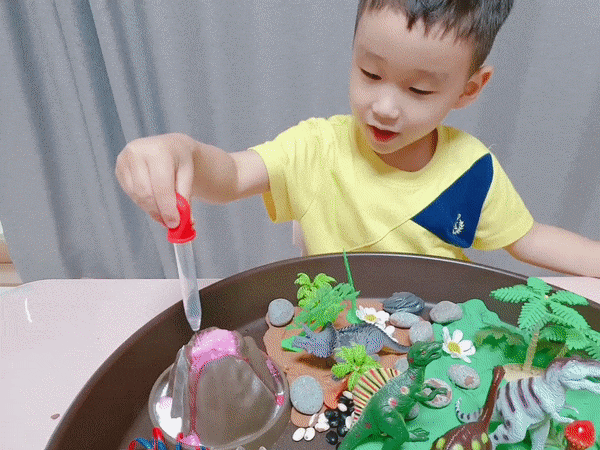 아이디어가 부족한 탓인지 공룡 하면 화산폭발 놀이를 가장 먼저 떠올립니다. 실은 준비물도 간단하고 무엇보다 아이가 매우 즐거워 보이기 때문에 가끔 내 줍니다.