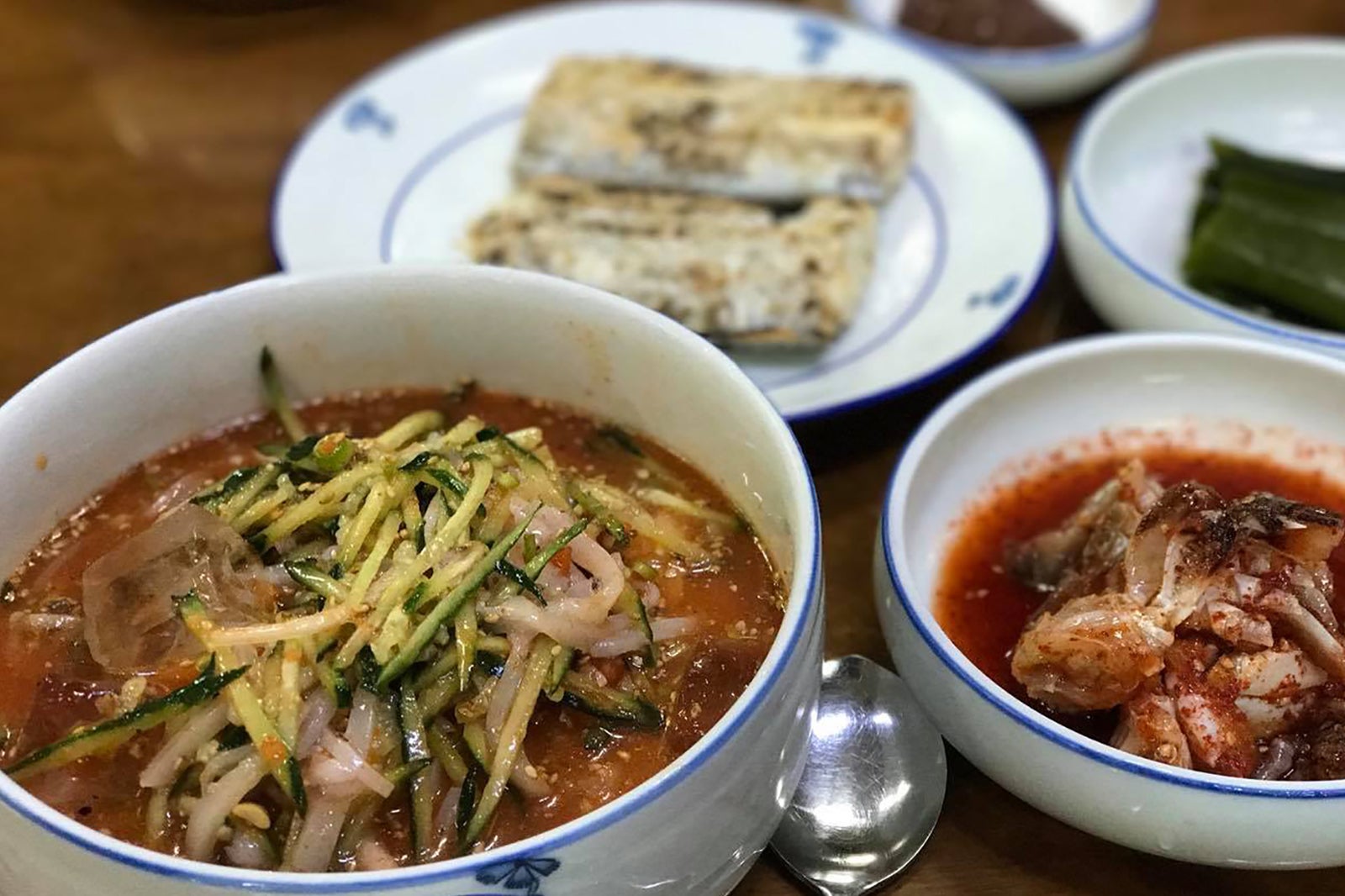 흑돼지고기 600g(66,000원) 주문!너무 늦은 시간이라 가볍게 먹고 자려고 600g만 주문했어.(대체로 다른 메뉴는 안 시켰다는 뜻 ㅋㅋ)복고 감성 쟁반에 빼곡히 나온 반찬.깻잎, 상무, 상추겉절이, 묵은지, 콘마요네즈, 양파절임, 파절임, 마늘 등특히 상추 겉절이가 너무 시원하고 맛있었다.그리고 찍어먹을 소스도 잔뜩!멜적, 갈치젓, 고추냉이, 쌈장, 소금 등.멜적이나 갈치젓은 관광객 취향에 맞았는지 강하지 않아 개인적으로 먹기 좋았다.일단은 멜적부터 철판에 올려서오늘의 주인공 군고기도 올린다!직원분들이 구워주시는 시스템이라 너무 편리했다.흐흐흐흐직원 말로는 최근 흑돼지 사육 방식이 많이 바뀌었기 때문에 완전히 익히지 않고 70~80%만 익혀 먹어도 된다고 했다.그런데 그렇게 먹으면 비린내가 느껴져서 나는 잘 익혀 먹어.(냄새에 매우 민감한 분) 남편은 아주 맛있게 먹었다.ㅎㅎㅎ그리고 구워주신 묵은지와 멜적 가득 담근 고기와 먹으면 최고! 제주 고집 총평특이한 흑돼지 사육 방식이 나에게는 잘 맞지 않았지만 그래도 제대로 익힌 후 향이 적당한 멜적과 갈치젓과 함께 먹으면 아주 잘 어울렸다. (냄새에 민감한 분들만 참고하면 될 것 같다) 그래도 고기 자체는 숙성되어서 그런지 부드럽고 맛있었다. 무엇보다 공항근처라는 지리적인 장점과 늦게까지 영업한다는 점이 관광객들에게 큰 장점이라고 생각해!
