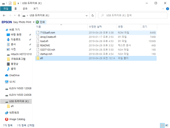 이 중 SSD7103_UEFI_v1.1.4_19_04_29.zip 이 파일을 비어있는 usb에