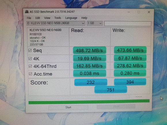 클레뷰 250GB SSD 클린 상태의 속도 측정 결과, 일반적인 SSD (S-ATA3) 성능…