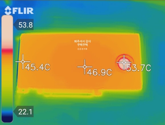 메인보드에 꽂힌 채 측정이 어려워서 동작 직후 바로 빼서 찍어봤어온도는 좀 높기는 하다.