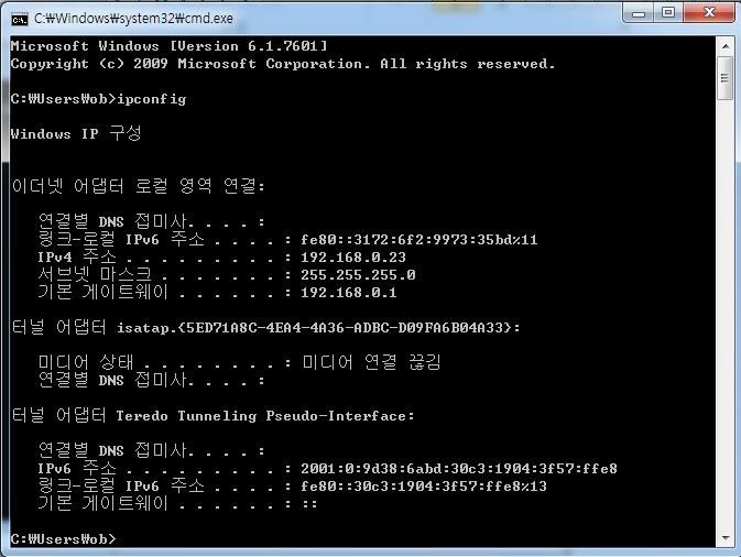 2. ipconfig 입력 후 엔터