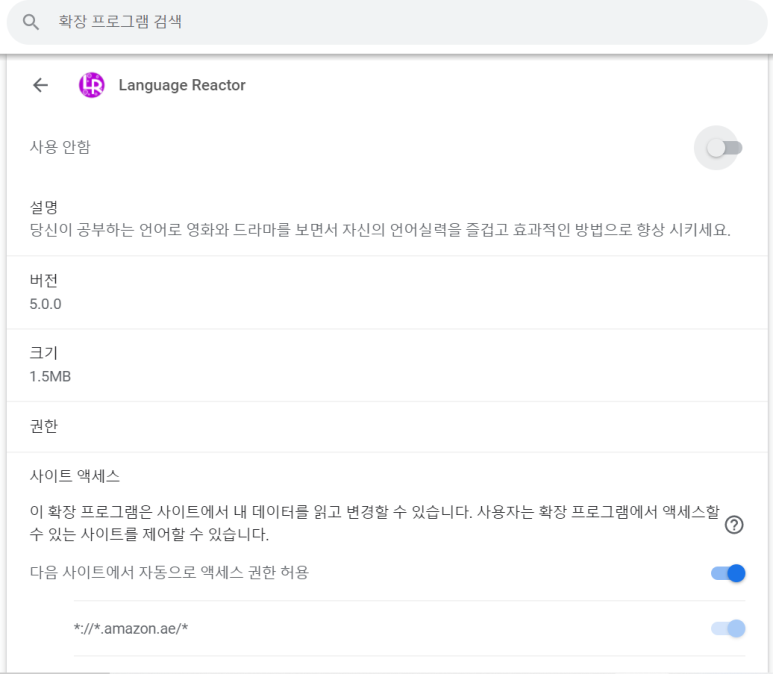 먼저 크롬 웹스토어에 접속하여 languagereactor 설치