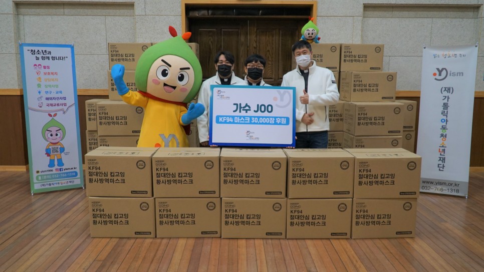 재단법인 가톨릭아동청소년재단(이사장 이용권 신부)은 가수 JOO로부터 KF94 마스크 3만장을 기부받았다고 19일 밝혔다.