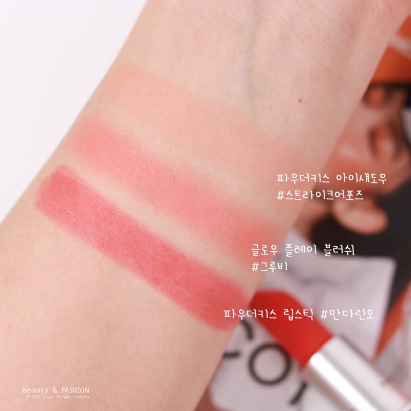 파우더 키스 아이섀도 스트라이크 어포즈 1.5g / 33,000원대의 밝은 쉘피치로 봄 웜이라면 구입하세요.저는 쿨톤인데… 심쿵해차나염..(웃음)