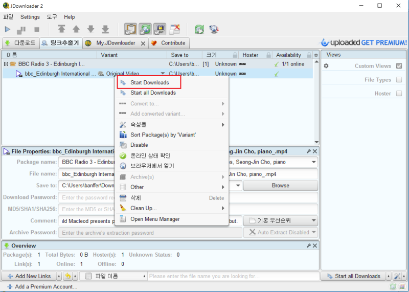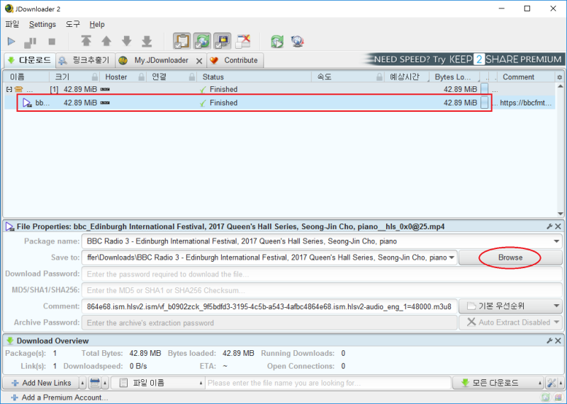 [s/w] JDownloader 2 – BBC Radio 3 다시 듣기 저장