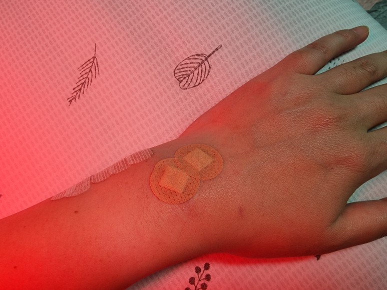 원형 밴드를 사용해 주세요.일반 밴드는 고정할 수 없지만 원형이 잘 붙어 있어서 마사지도 가능합니다.