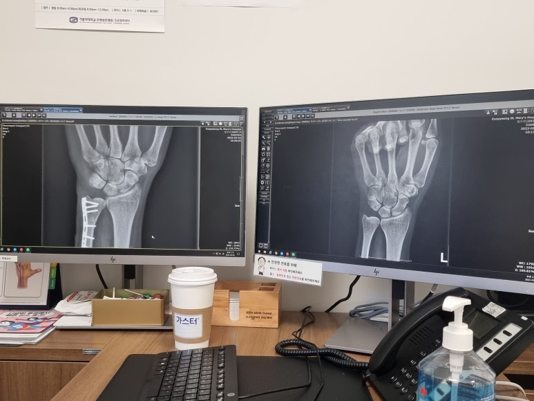 지난 외래 때 찍은 사진들이 저의 허술하고 튼튼하신 손목 교수님, 다시 한 번 수술 열심히 해 주셔서 감사합니다.아픔 없는 일상이 정말 행복합니다.교수님 덕분이에요 ^^다음 외래에는 악력을 좀 더 키우겠습니다 ^^