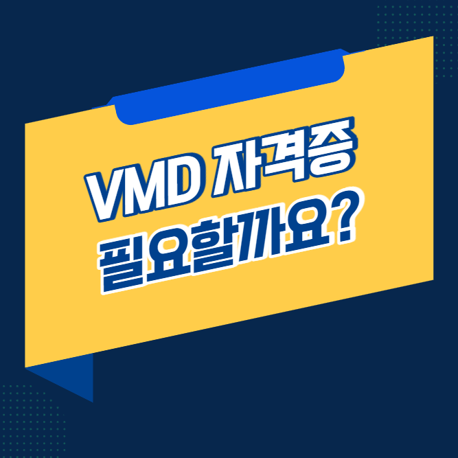VMD 자격증이 필요한가요?VMD 자격증이 있으나 국가공인 자격증이 아닌 한국직업연구진흥원에서 취득할 수 있는 민간자격증으로서 취득요건이나 자격증이 필요하지 않기 때문에 취업이나 스펙에 큰 도움이 되지 않기 때문에 실업적인 취업을 위해서는 본인의 역량 강화와 독창적인 포트폴리오가 더 중요하다고 생각하며 위에서 설명한 바와 같이 전문교육을 받으면서 디자인과 관련된 국가공인 자격증을 취득하는 것이 좋습니다.