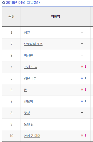 일단 어제 박스오피스 순위.