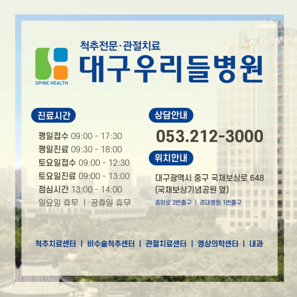 대구 저희 병원은 환자 개개인의 증상과 상태를 고려한 진료를 바탕으로 치료하고 있습니다.