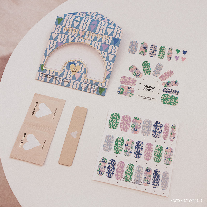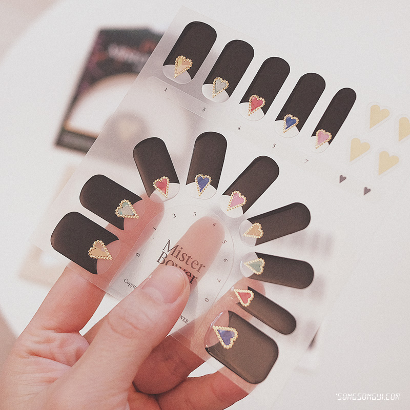 제일 처음 만나본 젤 네일스티커는 MONO-B! 다양한 컬러와 하트로 완성된 모노그램은 꾸미지 않은 듯한 포인트를 주기에 좋은 네일이었지만, 데일리 네일로 사용하기에도 너무 예뻤다!